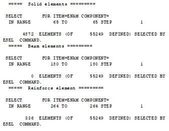I attached below my command file, in which I use SOLID185 and BEAM188, but I don't think that matters. These commands are inserted in the analysis module.Â