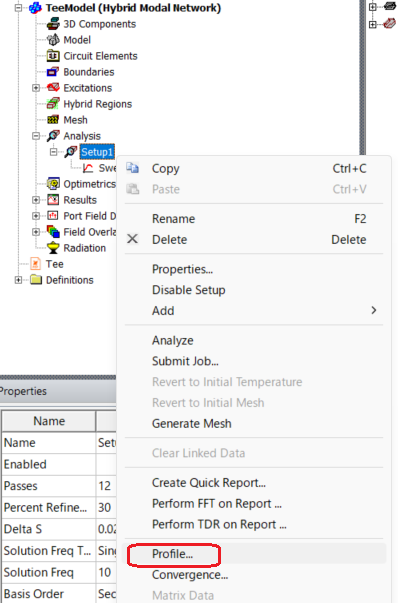 Are you experiencing memory shortages when performing an adaptive analysis? You can find analysis details by viewing the profile. You can view the profile by right-clicking Analysis > Setup* in the Project Manager and selecting Profile.... -
