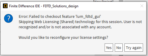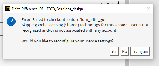 Ansys EmployeeCan you try to open and run Lumerical FDTD from the Optics Launcher ? >>Running the Ansys Lumerical CAD/IDE – Ansys Optics
