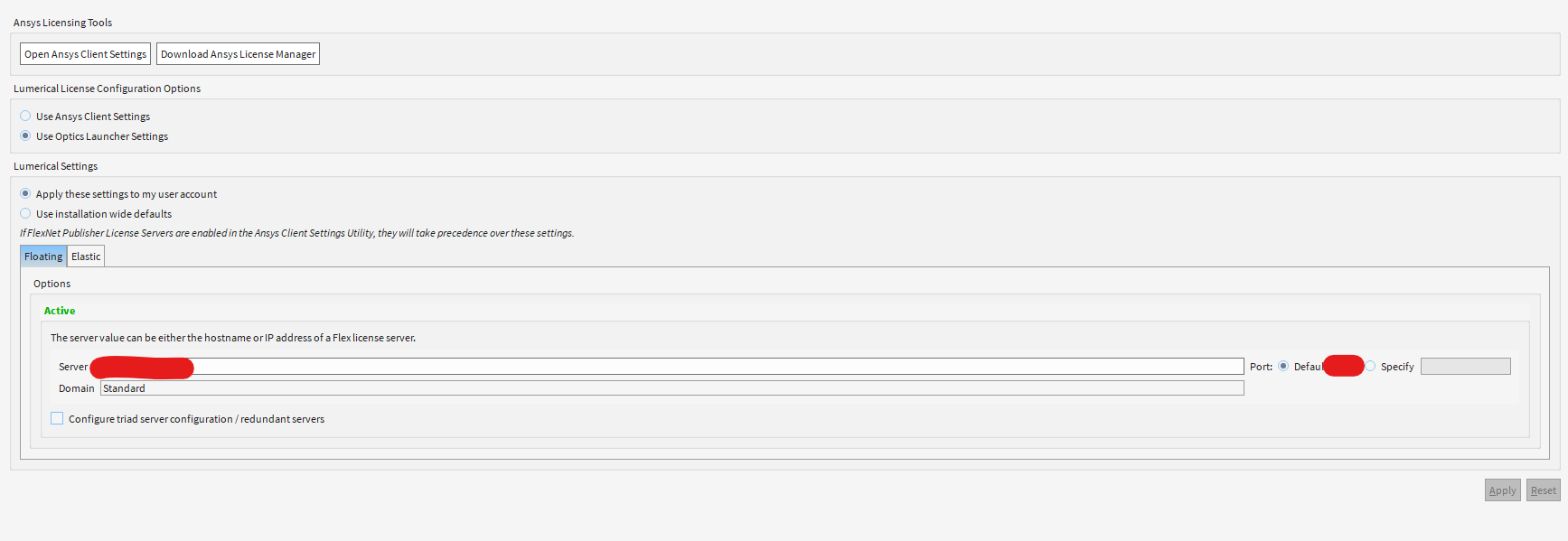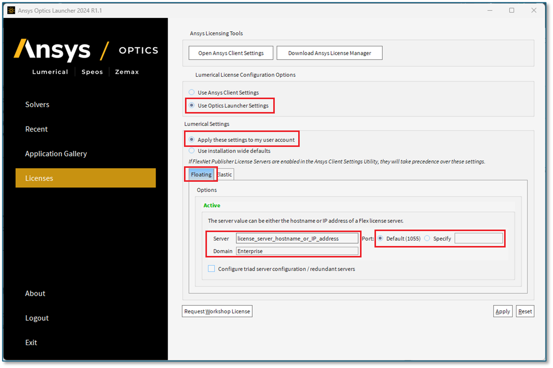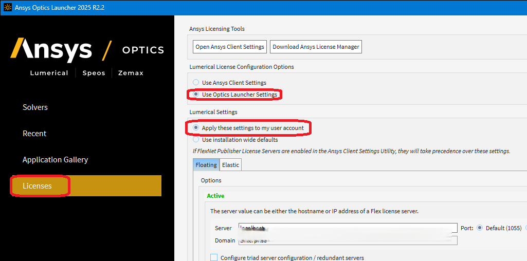 - License configuration using the Ansys Client Licensing Settings app – Ansys Optics
