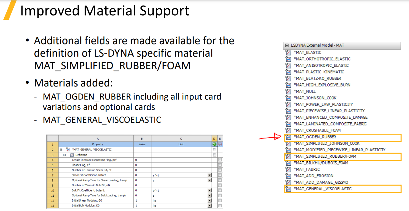 Ansys EmployeeHi Hyperelastic material models are not supported, our recent version include Blatz-Ko and Simplified Rubber and especially the ogden model is not natively supported, you may want to use the command snippets for the inputting the material card scoped to a body and the material is MAT_077o with additnial viscoelastic terms defined.Â
