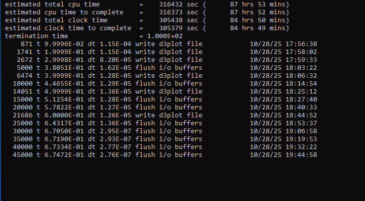 I created a mesh of Patch Independent tetrahedrons.Now if my bodies have SECTION ELFORM=1, I get an infinite division of timesteps:
