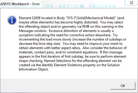 Ansys EmployeeElement distortion messages are usually severe problems due to excessive loading.