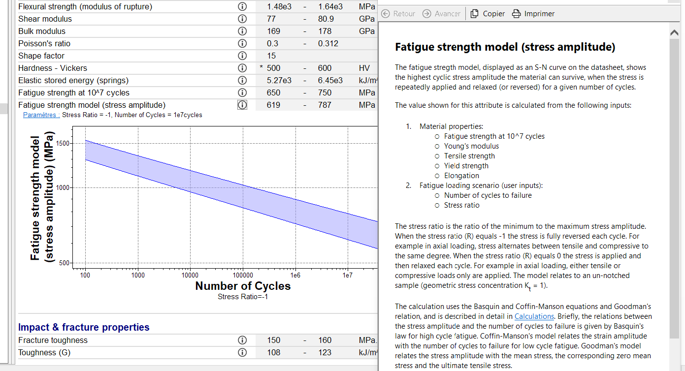 Then if you need data, you can find SN curves and documentation for example in Granta databases (EduPack for teaching, Selector and MI for research). See the screenshot below as an example.
