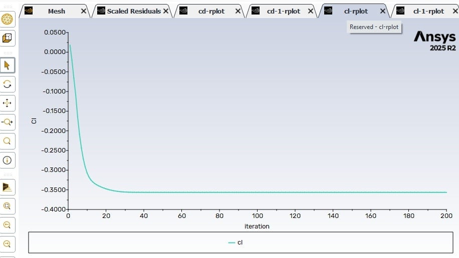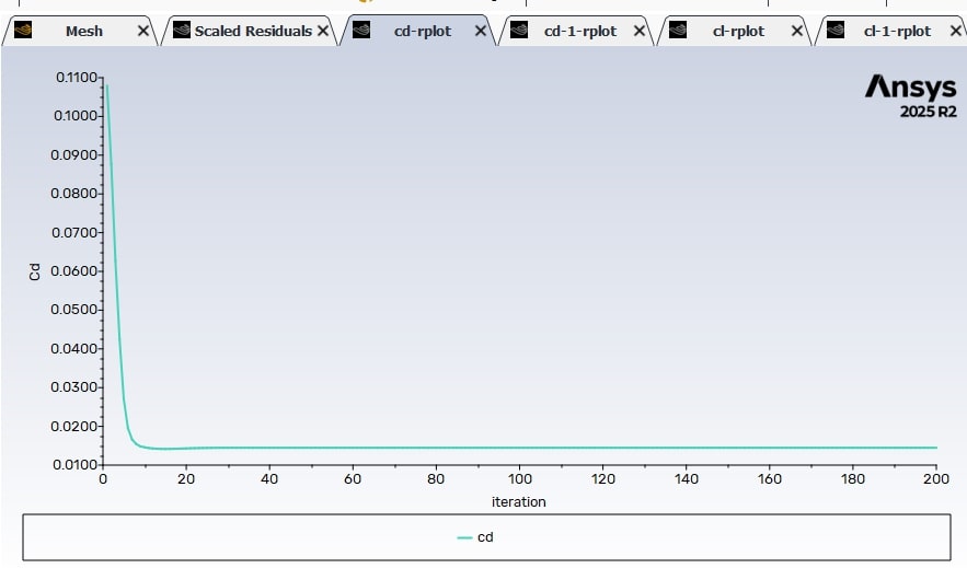 Another option is to export the fully iced grid into Fluent Aero (launched in the same way). This environment offers more automated setup, plotting, improved visualization tools, and access to additional aerodynamic coefficients for more detailed analysis.