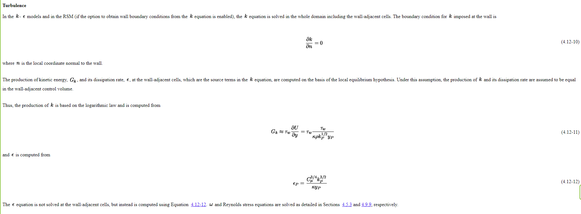 SubscriberFor Wall function approach the k and epsilon equations are not solved upto the wall, rather their value is pescribed at the first cell centre adjucent to the wall boundary. Ansys Fluent theory guide tells this is how the values of k and epsilon are solved in the first cell centre.Â
