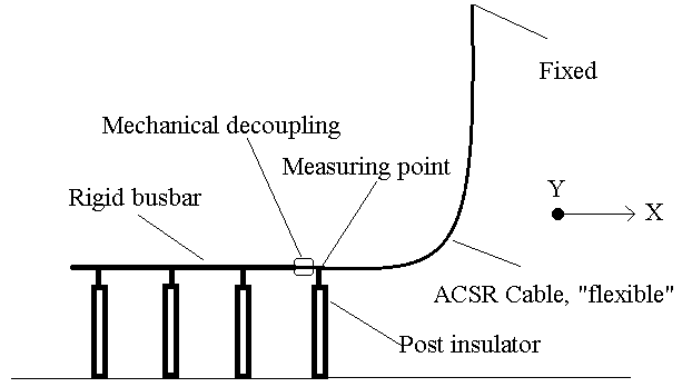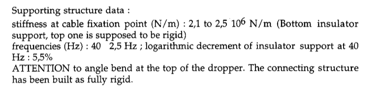 I made this kind of model, which is tested in real life laboratory and i have some test results, but problem is there is very little information about mechanical structure. My Question is that, is it possible to make model that there is 40 Hz oscillation at that measuring point if there is only that last post insulator and ACSR cable, because there is no mechanical information about that rigid section? There is some kind of mechanical decoupling and i think it is there for isolating that rigid section, but not sure.