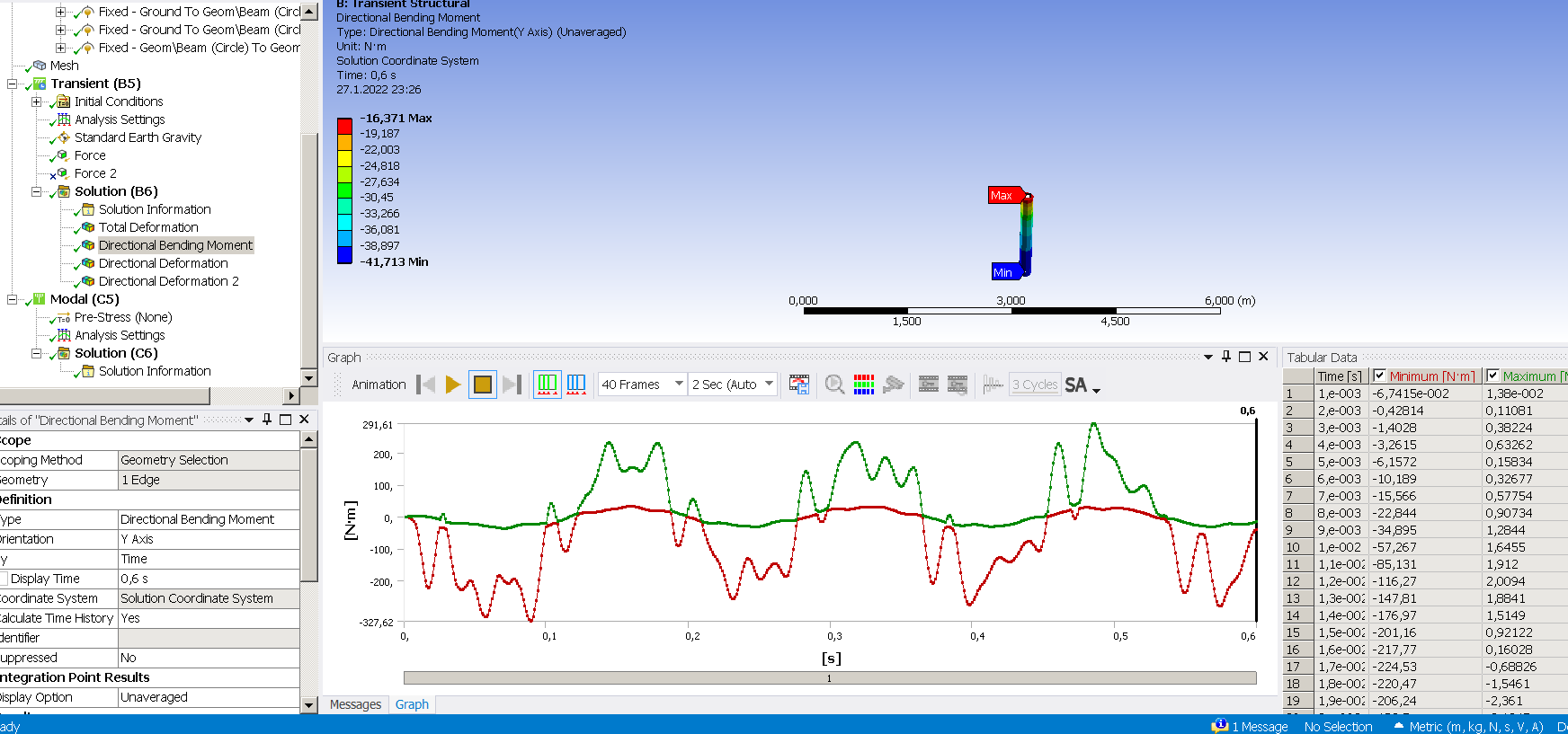 I made this kind of basic beam model, which is tested in real life laboratory and i have some test results, but problem is there is very little information about mechanical structure. My question is that, is it possible to make model that there is 40 Hz oscillation at that measuring point if there is only that last post insulator and ACSR cable, because there is no mechanical information about that rigid section? There is some kind of mechanical decoupling and i think it is there for isolating that rigid section, but not sure.