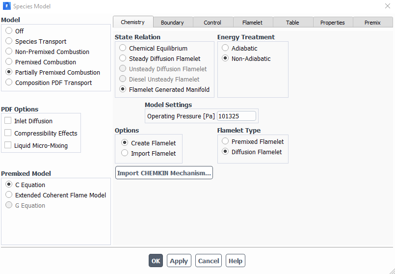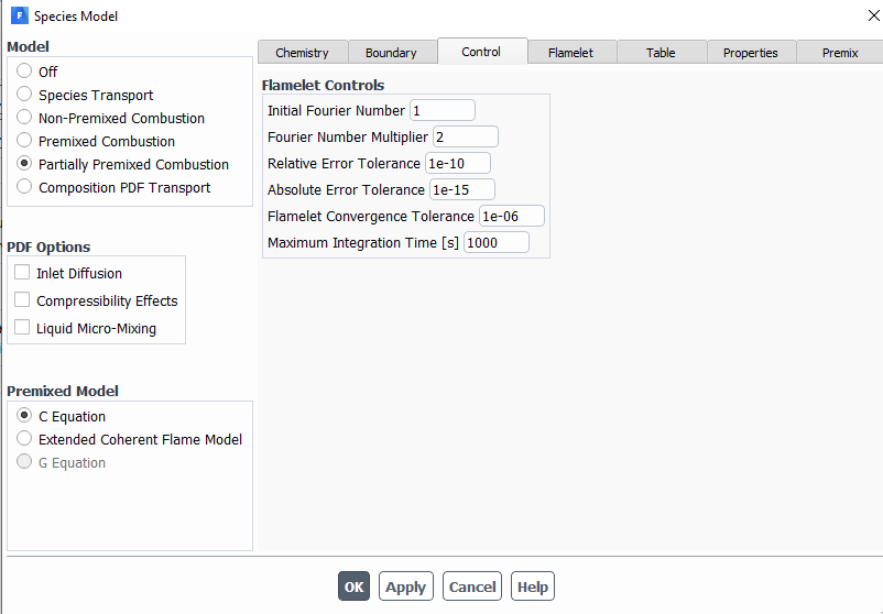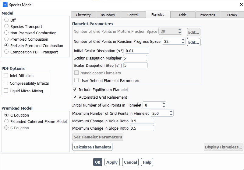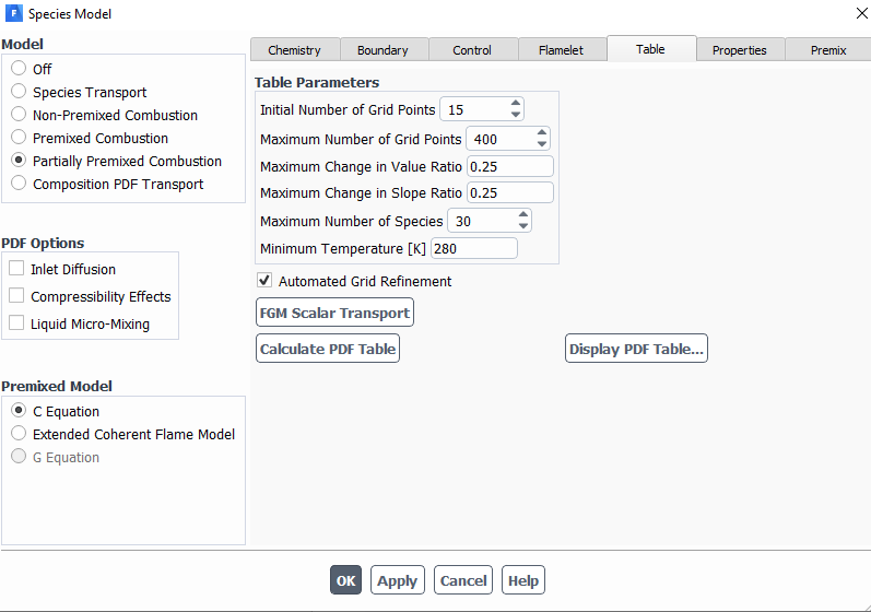 Nothing attached. Just the mechanism file and thermodynamics at the beginning to create the PDF table for the FGM. Are there any good practices you recommend when doing combustion transient (setup, timestep, etc.)?
