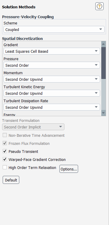 I am currently performing a reacting case of a swirling combustor. My model is (partially premixed combustion) FGM diffusion model. I ran an initial steady case, and it worked perfectly fine converging well, and when comparing velocity profiles versus experiment, they were really good. I am now trying to do the same case but transient, to do this, I used my steady state solution and ran the transient case with a time step of 1e-6 to keep the courant number well below 1. The turbulence model used in k-e realizable. When running the transient case at the first time step, the solution diverges, and a floating point error is given. I am using a coupled solver with a very low URF, but I still have the same issue. I tried using SIMPLEC as well but still same error. I also tried to patch the progress variable to 1 and still diverged, and then tried to patch it to 0 and still diverged. Any ideas about what could be the issue and how to sort it out?