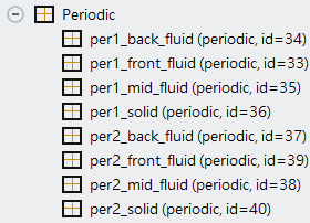 The problem is, I was able to set most of the interfaces as periodic-matching interface except the interfaces in the second and third picture , which are fluid and solid part, respectively.