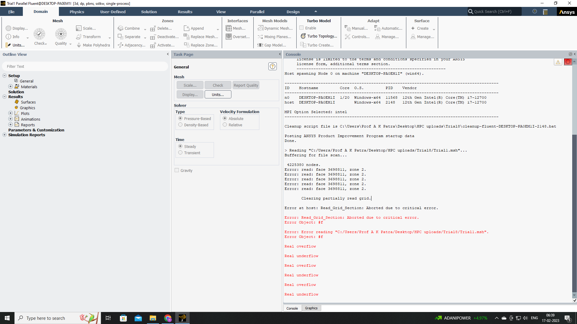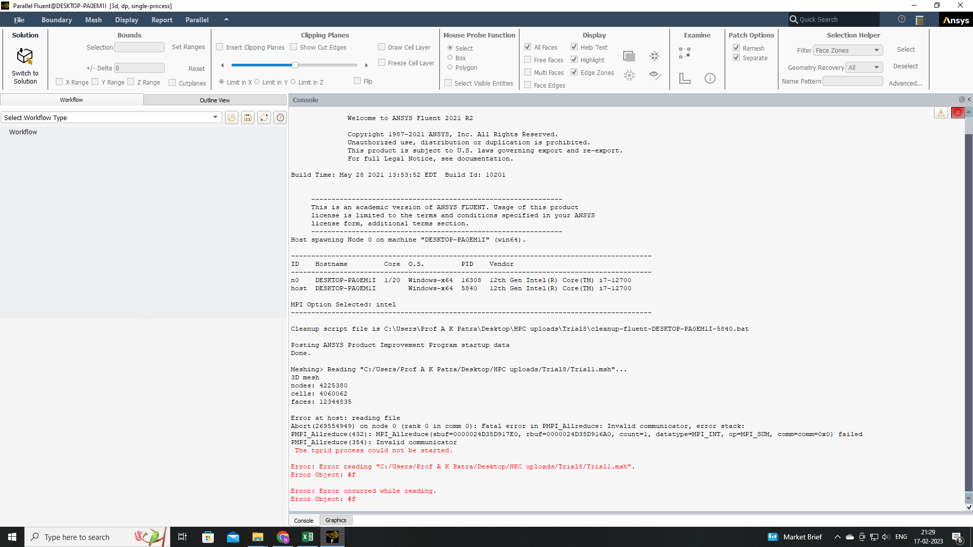 This is the error I recieve when I read the mesh in Fluent Meshing