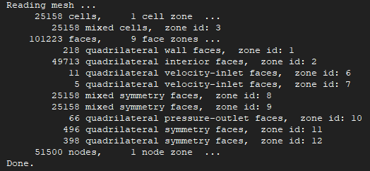SubscriberI attached the output from meshio trying to read the exported 3d mesh. Is it possible that the extruded 1 layer pseudo 3d mesh still has a face-based grid instead of real volume elements which were to be labeled hexahedron or wedges? I extracted the mesh from Fluent meshing because it didnt work in Solver mode. Is the Mesh data stored with the solution data in the CGNS file?