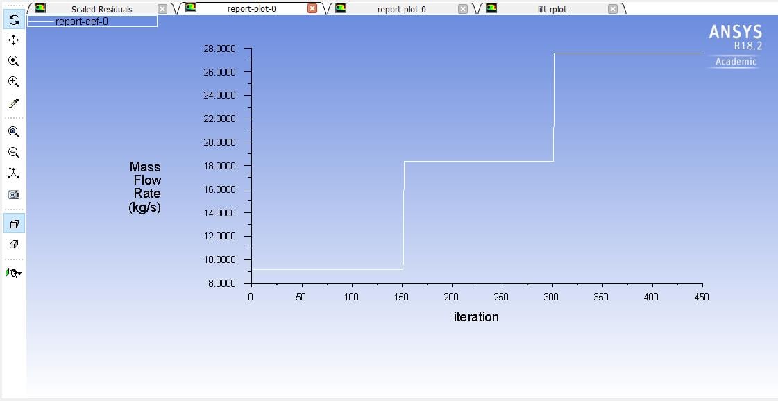 I'm running this transient simulation in a stand alone fluent component to eliminate all other coupling complications for now. I am making sure that the flow conditions are converging with every time step (also tried 500 iterations per time step where residuals went constant for a long time) and i m monitoring lift and drag as physical values and they are converging with every step increase in velocity (5, 10, 15 ... 50).Â