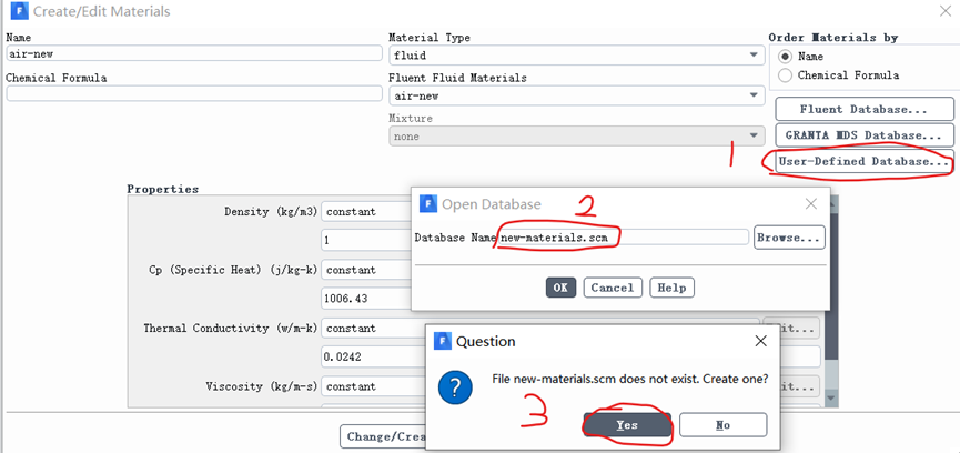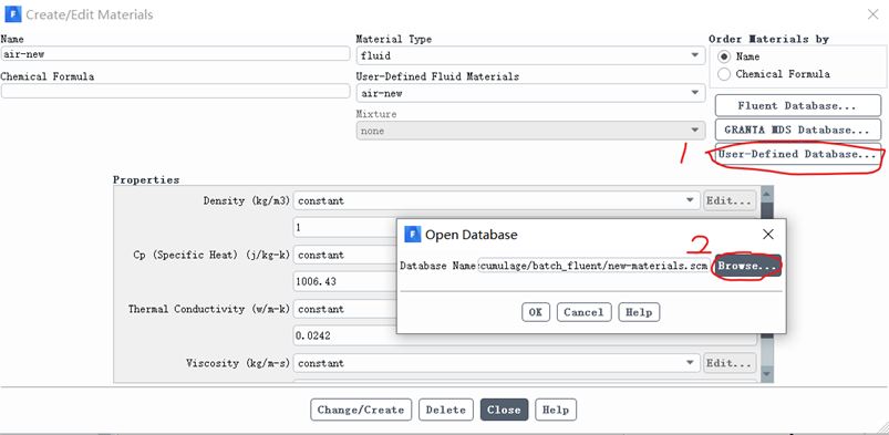 a) 点击Create/Edit Materials对话框的“User-Defined Database”按钮,打开“Open Database”对话框。