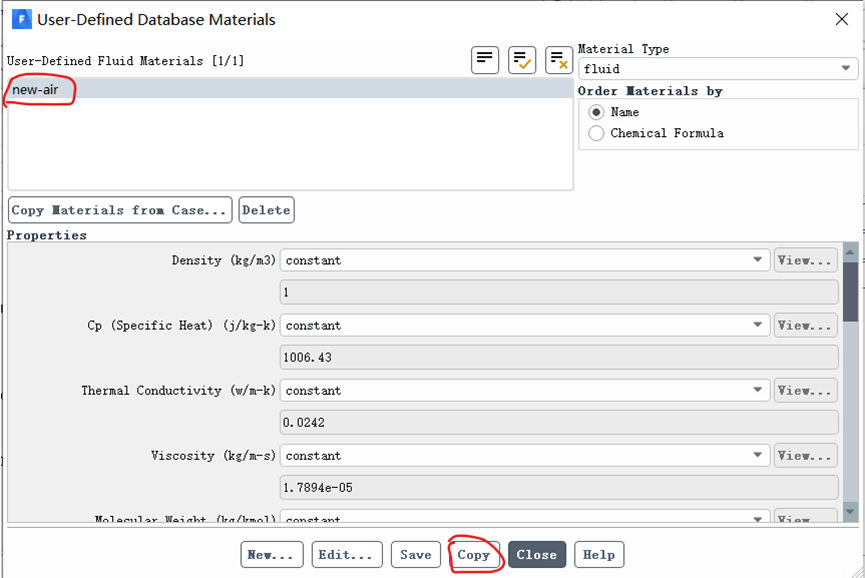 (1) 首先,保存新创建的材料,比如air-new是我新创建的。保存方法如下: