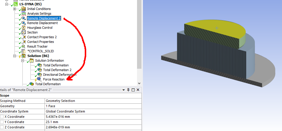 Is it possible to get force reaction in the results in LS-Dyna workbench? -