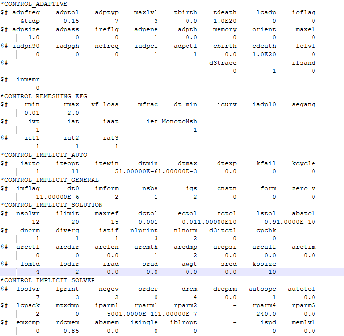 Hello, I am running a cold forging simulation in LS-DYNA using the implicit solver, and I am experiencing a sudden solver termination before the end time.