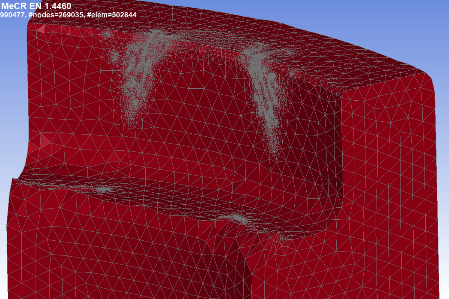 At the contact between the tool and the billet I see some distorted elements, which do not remesh. Here is a picture
