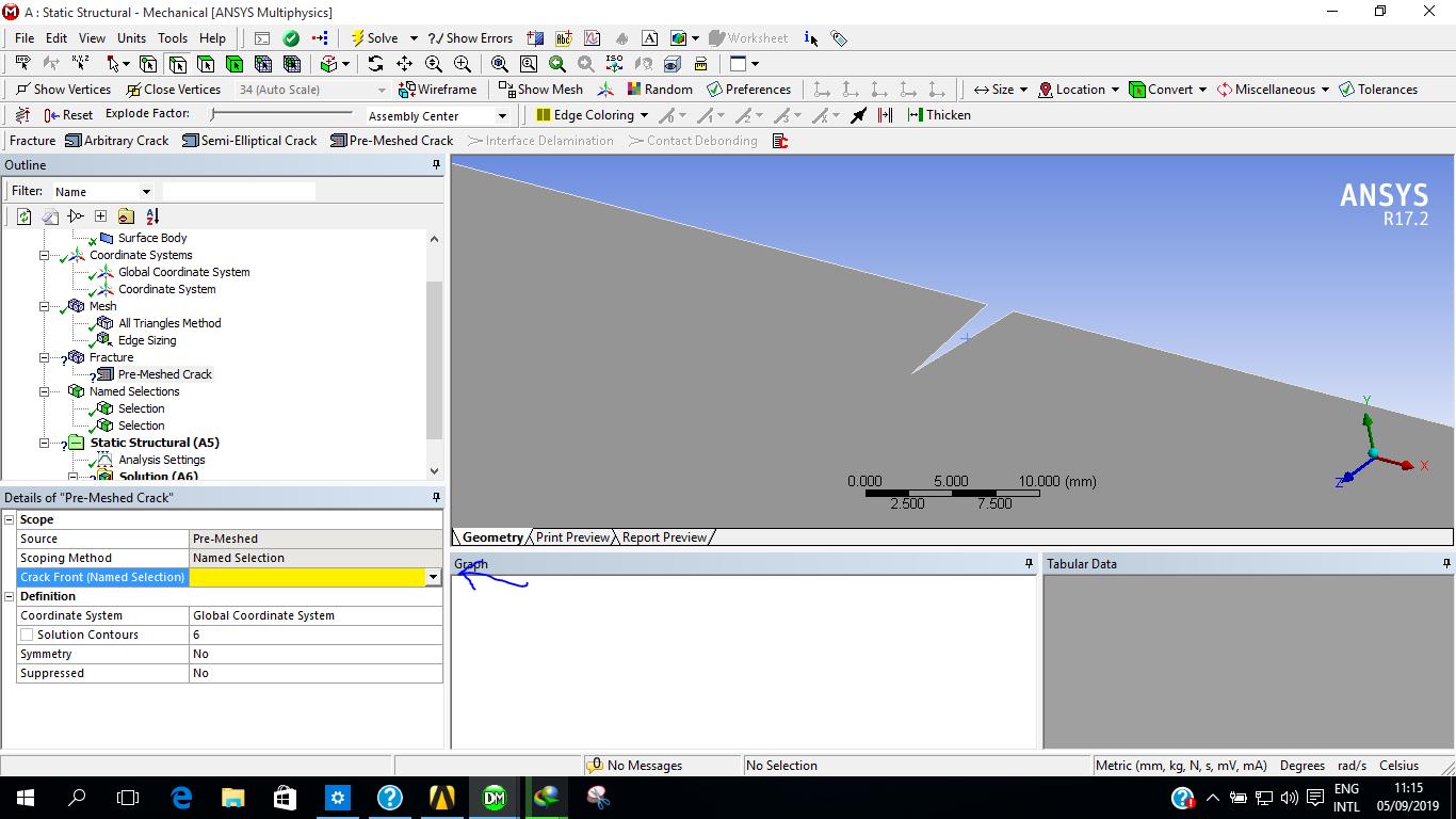 SubscriberYou have to use the Geometry editor to cut a Vee shaped crack into the edge of the sheet. Then you will have two edges that define the crack and a vertex at the crack tip.