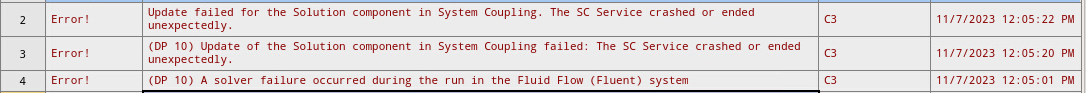 An error suggests that the solver has failed during the run in Fluent, please check the fluent transcript to see cause of failure.