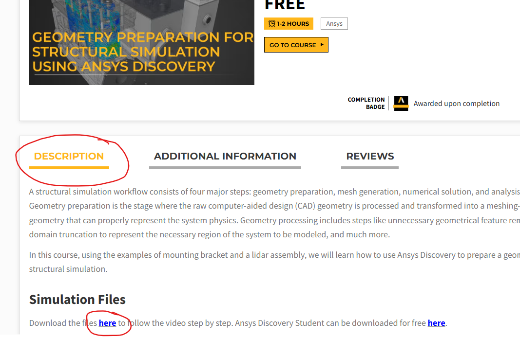 You can find it under Descriptions under Simulation Files: CAD Preparation for Structural Simulation | Ansys Courses