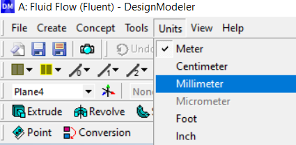 Opening CAD in another tool means trusting the conversion software: which can do what you're seeing where mm-m-km get muddled up. In your case, using a small cell size and then scaling in Fluent means the cells will also scale. "Ansys" is the company, you'll be reading geometry into SpaceClaim/DesignModeler and then Ansys (Workbench) Meshing/Fluent Meshing then Fluent. Don't worry too much what size Fluent thinks, just check and then adjust the scale (SCALE not UNITS) to ensure your domain is the correct size.