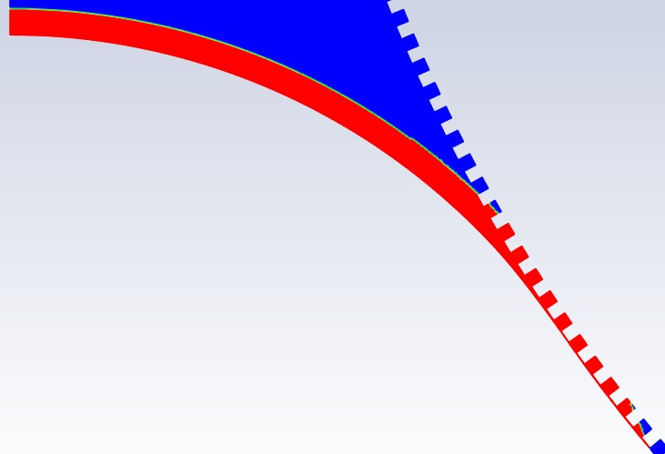 SubscriberDear rwoolhou  /forum/forums/topic/meshing-problem-8/  In a pervious post, you suggest me about scaling by keeping the dimensions for the roller in mm scale and scale in the fluent.  if I do so  big circle 300 mm small circle 100 mm and the difference between two big circles 5 micrometers. And patterns (H/W=30/40)  If i multiple these dimensions  300mm×1000  100mm×1000  5 micrometer×1000  And patterns 30 micrometer×1000  40 micrometer×1000  I am getting the same problem for meshing as you suggested to me.  And if only change micrometers dimension like pattern width and height (40*1000=40mm), (30*1000=30mm) and the gap between the circle (5*1000=5mm) and do not change other dimensions like big circle diameter = 300 mm and supported circle diameter = 100mm.  1. geometry, first of all, I can only make less no patterns. and how can I will be able to scale them?  2-second thing if I change the area between two concentric circles from 5micrometer to 5mm how I can I scale the area between two circles in fluent?  3. I need to mark the fluid region for as shown in the figure if I scale the mesh the radius of the circle and center will also change. so I need to mark the region for water how I will do this. I also divide the center and radius by 1000 and put these values for the marked region but it does not work for me. please suggest Â