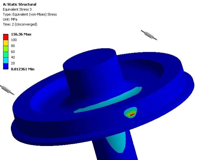 SubscriberHere is the stress on the highly stressed wheel with 12% of the pressure load applied.