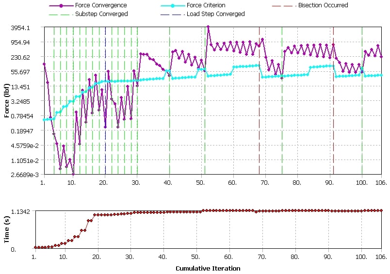 SubscriberI recommend you go back to CAD and slice the model down to 1/4 size so you are only studying one wheel/rail contact and use symmetry on the two cut planes to support the structure. That will make the solution go a lot faster and may resolve the error. You can find out details of the error by opening the Solution Output file under the Solution Information folder. Search for the word Error and reply with the text of that error.