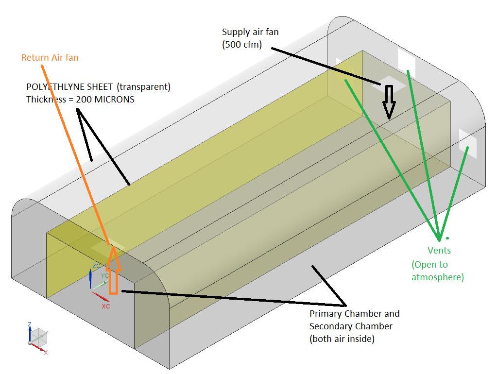 I am especially confused of BC on Polyethylene Sheet shown in Yellow Color (i.e. which is covering the Primary Chamber) which has air at ambient conditions on both side (i.e. outside and inside) -