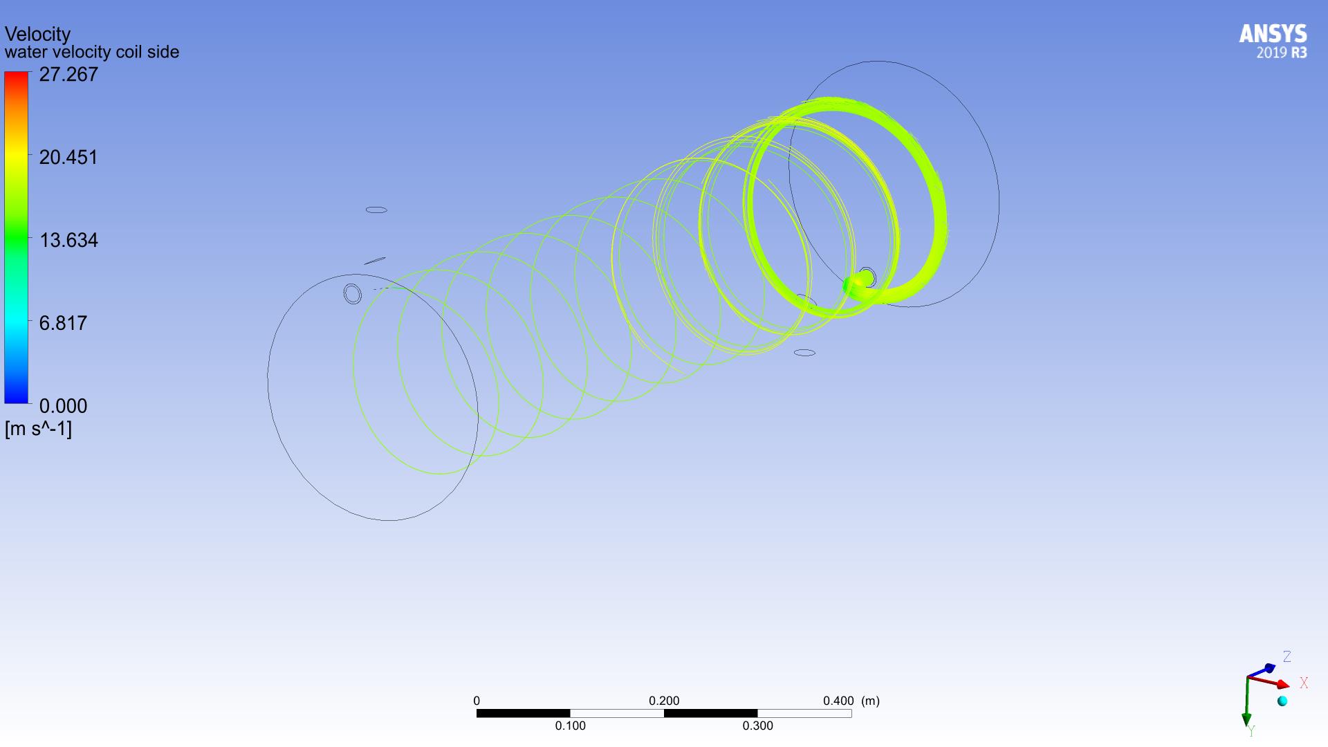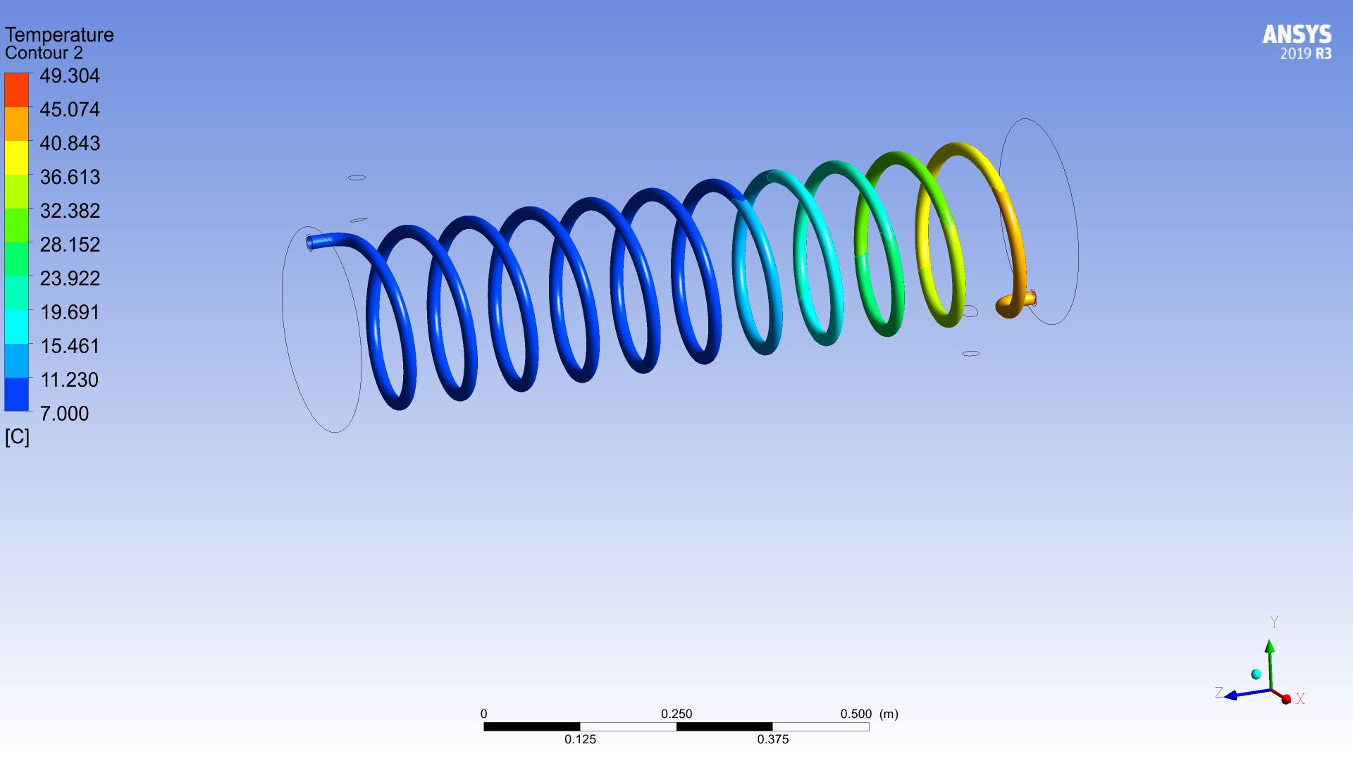 The first thing i checked in cfd post is the temperature change of hot fluid [Oil at 110C] which flows in shell and the water at 7C flows in coil. There is not much temperature change actually no heat transfer is occuring, although somehow i got some temperature change but i am not sure if thats correct.