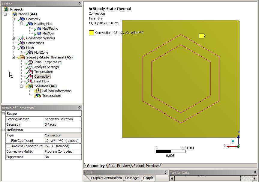 The front faces of the mat and coil have a convective BC. I just made up a Film Coefficient, you may want experimental data to support this.