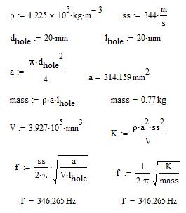 If I use a correction of 0.35D, then I get f = 298 Hz, which is very close to the acoustic model.