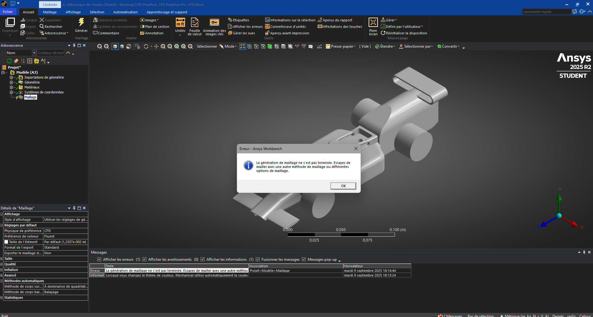 SubscriberHello, I need help testing the aerodynamics of this 3D model. The problem is that I get an error message when trying to create a mesh. -