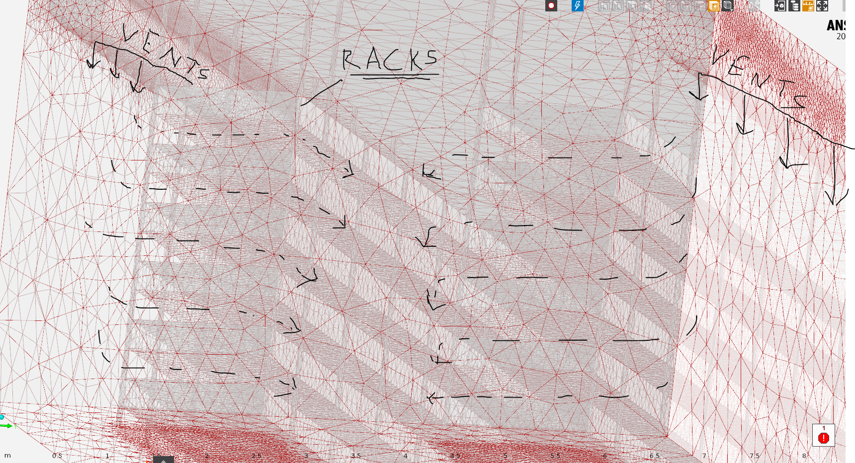 I am working on a rather large, complex geometry. It is a room filled with racks which is ventilated on each side by a plenum with small holes in them. Its important that the racks have a detailed mesh.