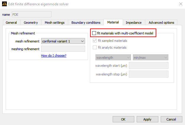 Do you have the "fit materials with multi-coefficient model" option of the FDE solver object turned on?