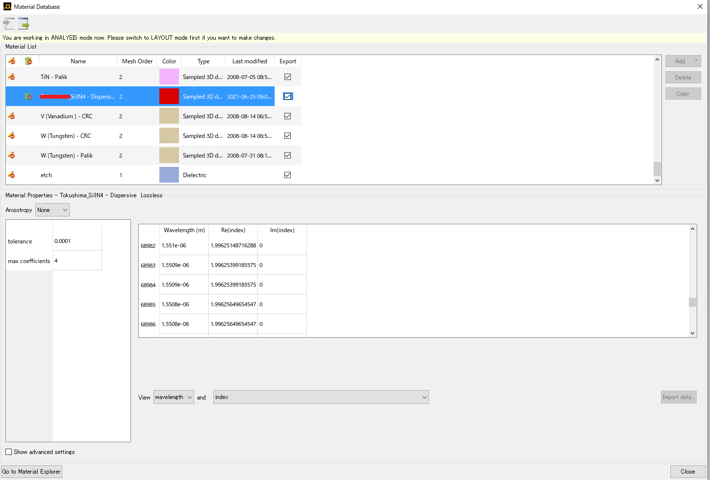 This is where the losses are coming from in your simulation. If you would like to simulate a lossless material, you can specify the index directly by selecting "June 29, 2021 at 12:58 amomnia.nawwar