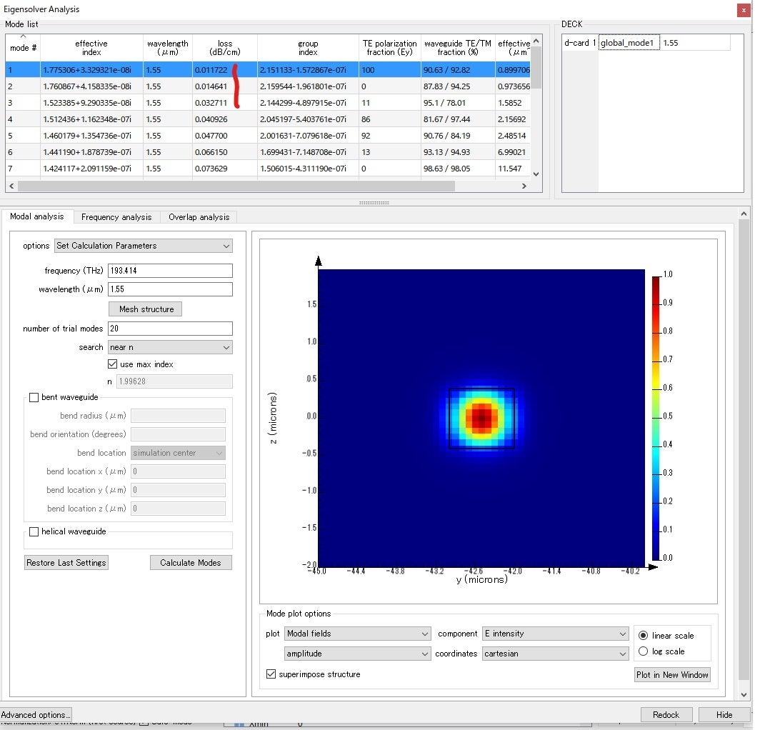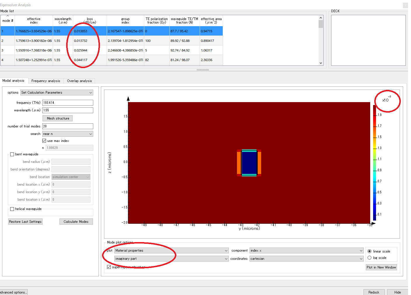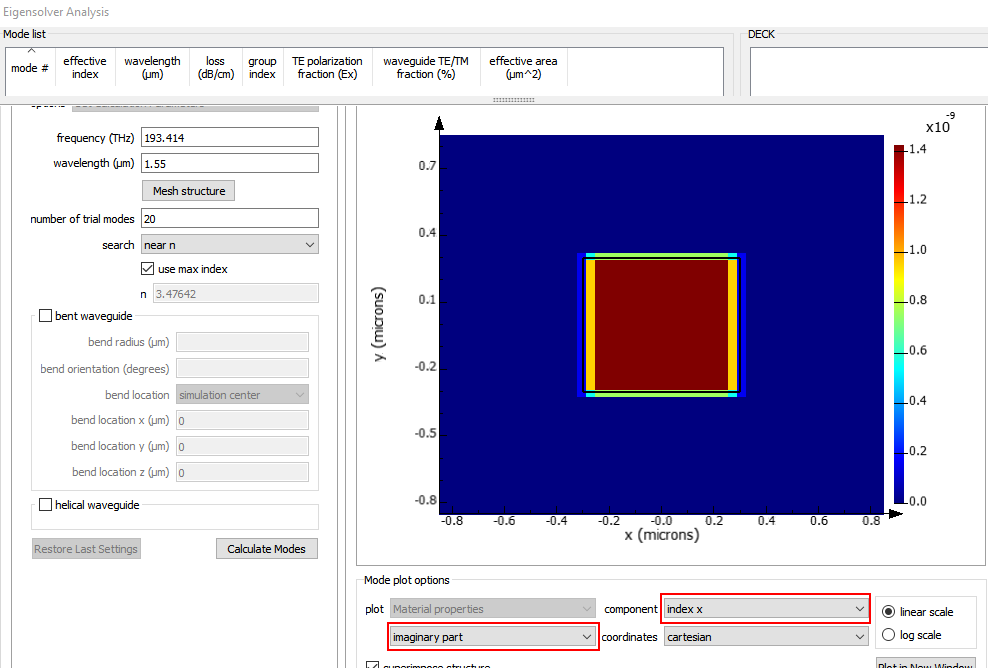 Another question please. I am using a lossless material data with imaginary index value of zero. However, when calculating the modes, I have a loss value in the "Eigensolver Analysis" mode list starting from 0.011722dB /cm for straight waveguide and increase as I do bend analysis.