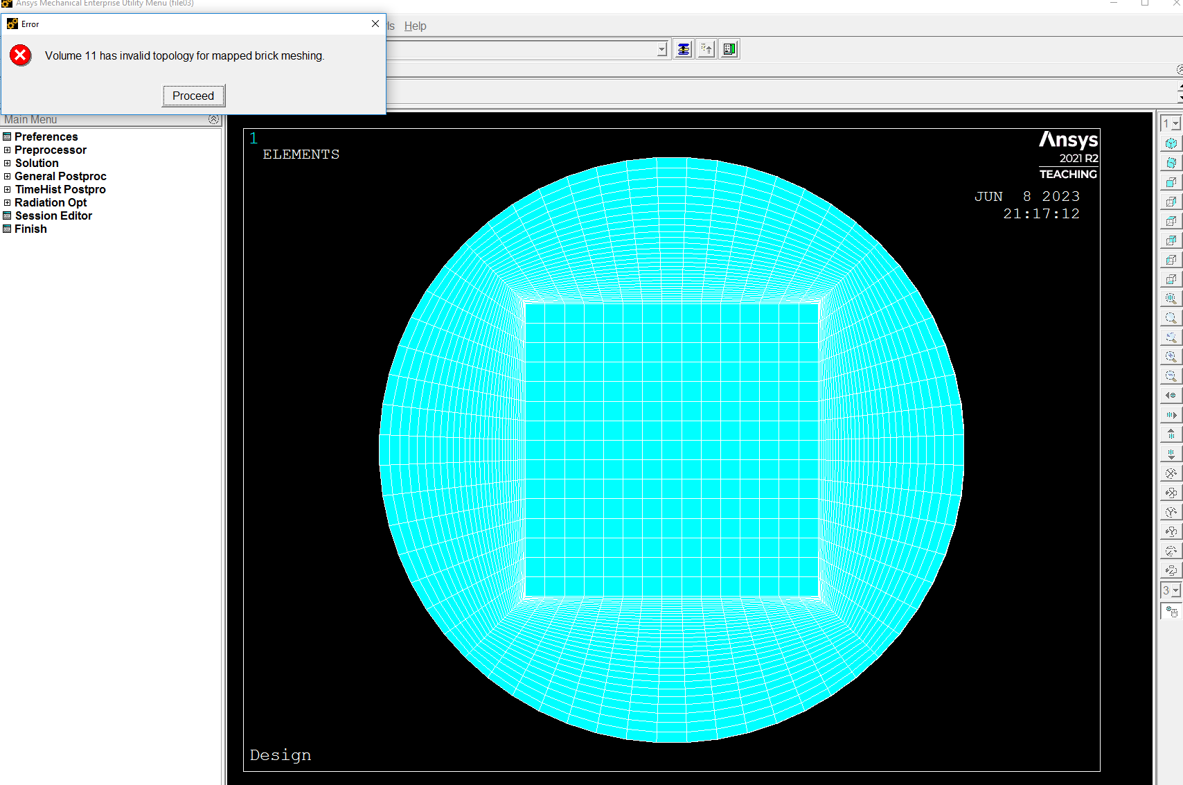 SubscriberI have facing a problem while trying to do the mapped among a cylinder and blocks in ansys mechanical apdl.I used solid186 as mapped brick meshing.in the error file it is showing invalid topology for mapped brick meshing.looking forward to getting some ideas how to fix this problem.