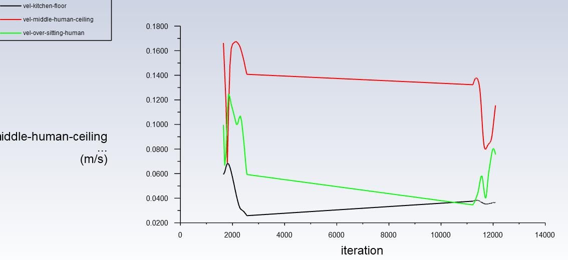 here are the screen shots of flux reports, enthalpy flow rate, convergence (residuals + some of the points in the room monitored), inlet and outlet settings. The convergence now does not look perfect, because around 1k iterations before I changed inlet and outlet from velocity type to mass flow type (before outlet was a negative velocity inlet). Nevertheless, before these changes, when all the results were already quite stable, all of the heat fluxes were almost the same (inlet heat flux was around 5W less).