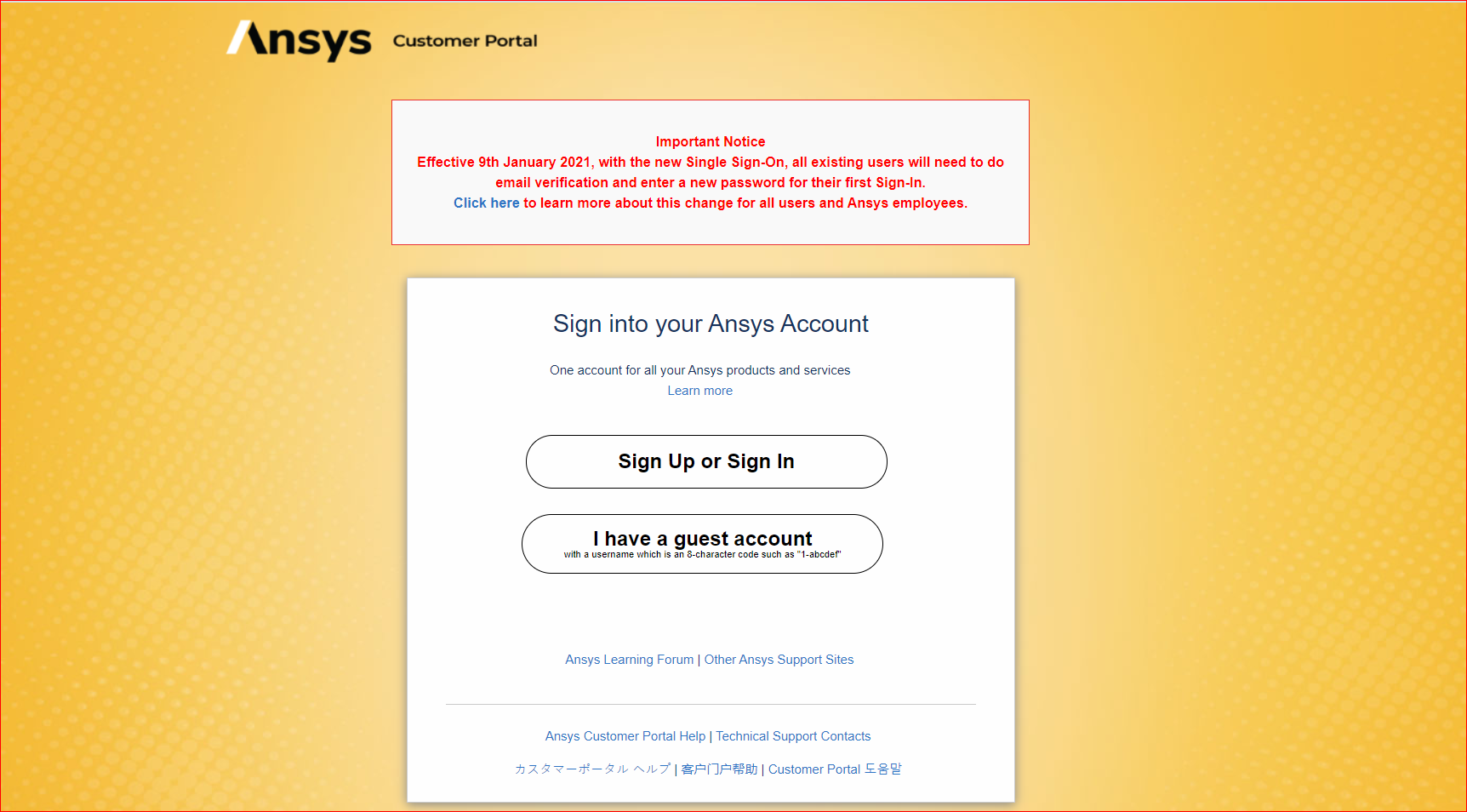 But, I am not able to sign-in at the Ansys Customer Portal.