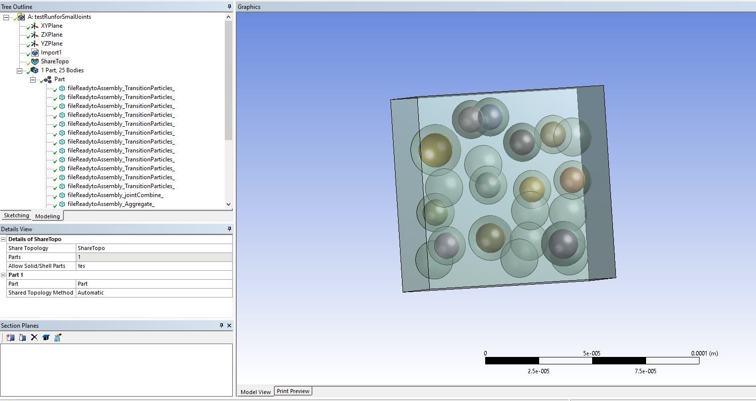 My assembly includes a rectangular box, spheres, semi-hollow spheres, and voids.Â