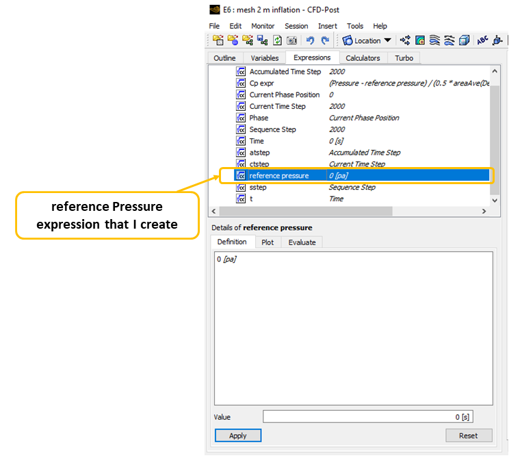 I am working on a tall building CFD and I have to validate my results. so I need to compare Cp (pressure coefficient) of some points on building with experimental results. I have create points and for creating Cp expression I enter this formula into Expression: