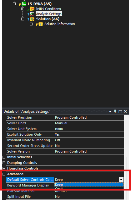 I am running a Finite Element Analysis using ANSYS Workbench (LS-DYNA extension). I’ve encountered an issue where the exported .k file automatically includes the *CONTROL_BULK_VISCOSITY keyword, even though I haven't manually added this card in the outline tree.
