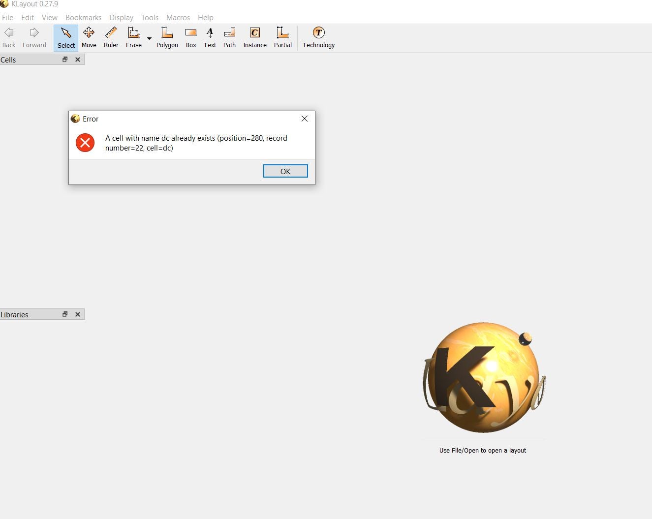 I am getting an error in Klayout