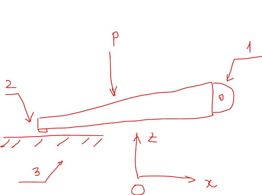 I'm working on a structure like a flap which is supported by hinges (1) at aft side and the steel pads (2) resting on the ground (3) at the forward side. The compression load is P. There are 3 hinges and 9 steel pads