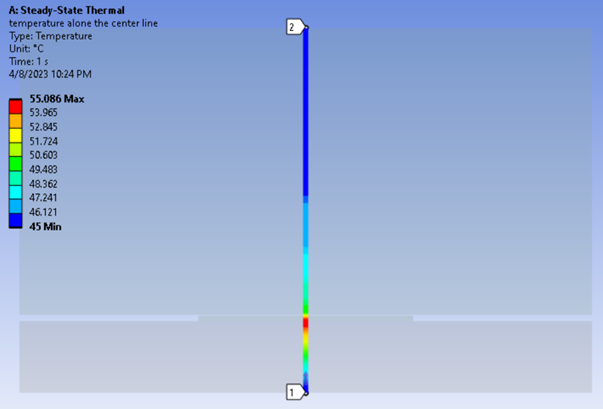 The boundary condition I have here is that all surfaces have the same temperature. So I was trying to see the teamperature difference inside the structure. Such as the temperature of a path that goes from bottom to top through the center of the self heat generation part Or the temperature distribution of a cross section that contain the cross section of the self heat generation part like shown in the images below.