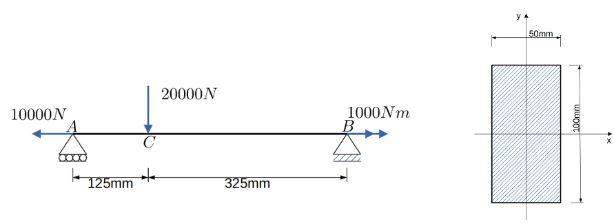 Here are the von Mises stress results at point C with APDL command object for BEAM189. Beam 1 is the left hand side beam and Beam 2 is the right hand side beam: