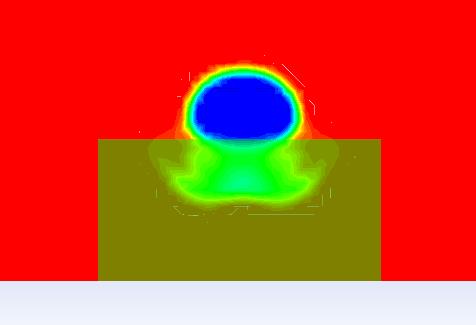 In the attached picture, the green rectangle is the porous zone, blue/green/yellow part is phase 2 I want to melt. the red part is phase 1 of gases. this is simulation without gravity.